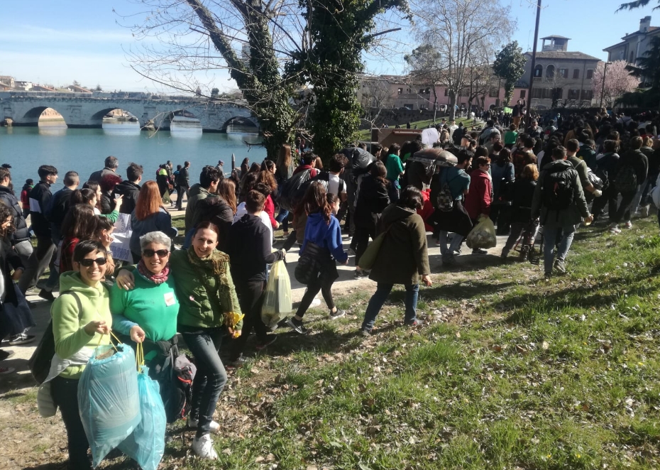 Tra le azioni previste a Rimini dal programma locale di Global Strike for Climate, anche la pulizia del Parco Marecchia da parte degli studenti che già dalla prima mattinata, armati di guanti, tute da lavoro e sacchetti, erano in tanti impegnati in diversi punti, dalla casa di accoglienza Don Gallo al Ponte di Tiberio, per ripulire da plastica, carta ed altri rifiuti il verde pubblico.