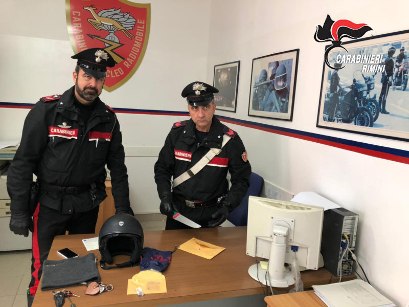 Nel primo pomeriggio di mercoledì 9 maggio i Carabinieri del Nucleo Operativo e Radiomobile della Compagnia di Rimini hanno tratto in arresto in flagranza del reato di rapina E.V.E., 32enne romano, da alcuni anni domiciliato a Rimini.