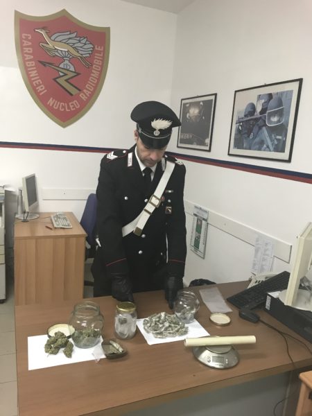 Ma i militari lo raggiungevano e lo fermavano sottoponendolo a controllo di polizia e poi, d’intesa con la locale Autorità Giudiziaria, a successiva perquisizione personale e domiciliare conclusasi con esito positivo: infatti, nella camera da letto del giovane, i militari rinvenivano 22 involucri in cellophane contenenti complessivamente 220 grammi di marijuana, materiale vario per il confezionamento dello stupefacente, un bilancino elettronico di precisione nonché la somma di 100 euro ritenuta provento della pregressa attività di spaccio. Il tutto è stato sottoposto a sequestro in attesa di esperire le analisi di laboratorio del caso.