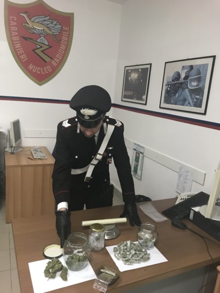 All’interno dell’abitazione i Carabinieri rinvenivano altresì vari residui di marijuana nonché tutto il materiale necessario per il confezionamento in dosi della sostanza che, se immessa sul mercato, avrebbe fruttato all’incirca mille euro.
