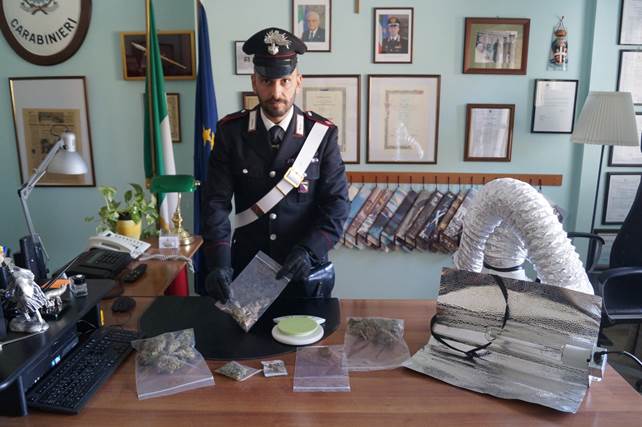 I Carabinieri della Sezione Operativa del NOR di Riccione, nell’ambito di una specifica attività d’indagine, congiuntamente ad unità cinofila antidroga appartenente al Comando della Polizia Intercomunale di Riccione, questa mattina hanno dato esecuzione ad una perquisizione personale e domiciliare a carico di S. S., 34enne residente a Montescudo – Monte Colombo, nel corso della quale hanno rinvenuto un etto di marijuana, in parte già suddivisa in dosi, oltre a materiale per la coltivazione delle piante e svariato e il confezionamento della droga stessa, tutto posto in sequestro. Domani sarà giudicato con rito direttissimo dal Tribunale di Rimini.