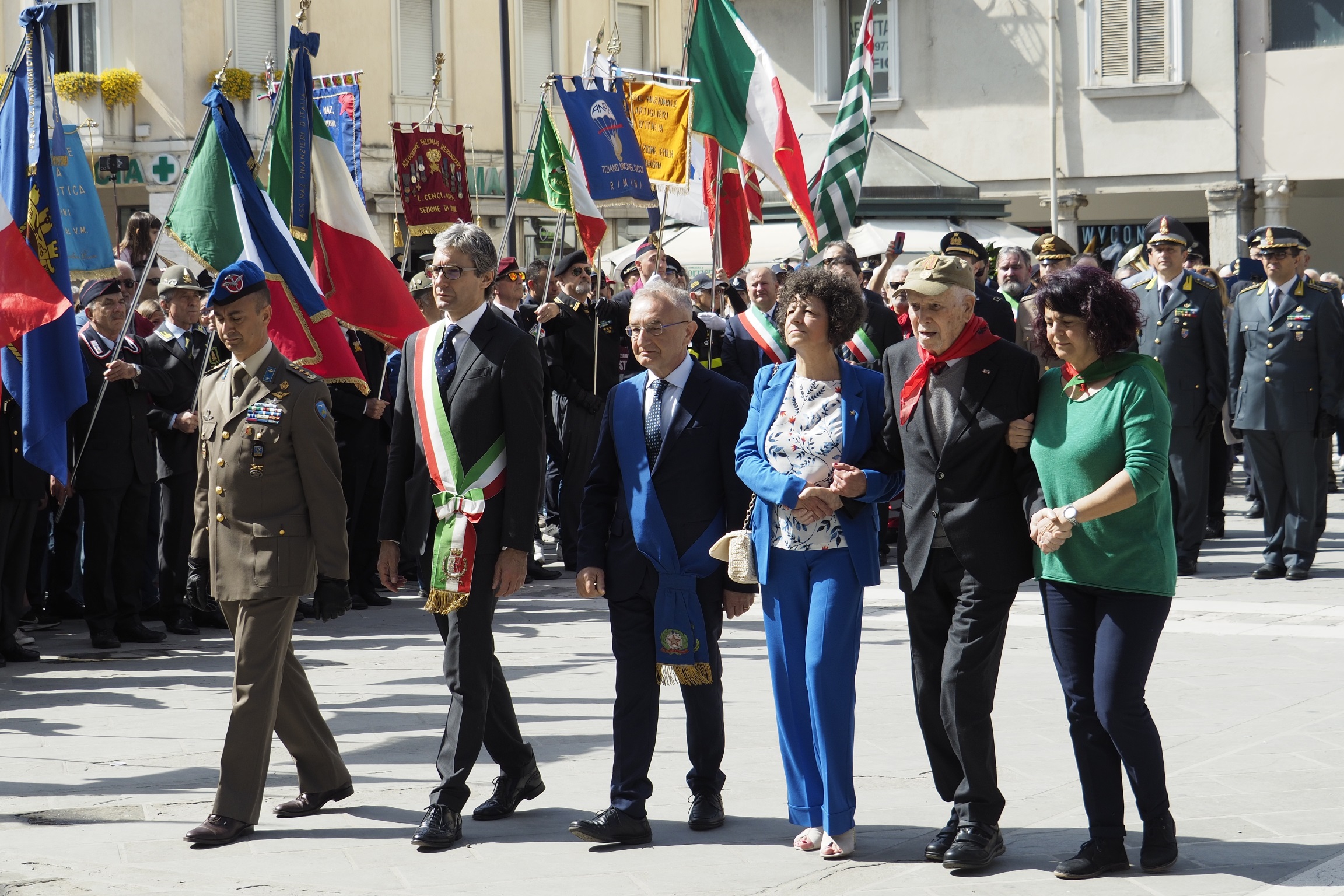 Dopo la posa di una corona al Monumento della Resistenza è seguito il corteo, durante il quale sono state posate corone al Cippo all’Arco d’Augusto, in Piazza Tre Martiri, in Via Cairoli e in Piazza Ferrari. In piazza Cavour, dopo la lettura dei nomi dei caduti riminesi per la liberazione da parte di due studenti delle scuole superiori riminesi (Ilaria Cicchetti del Liceo scientifico Albert Einstein, e Simone Frisoni del Liceo linguistico Giulio Cesare – Valgimigli), è intervenuto il Sindaco di Rimini Andrea Gnassi.