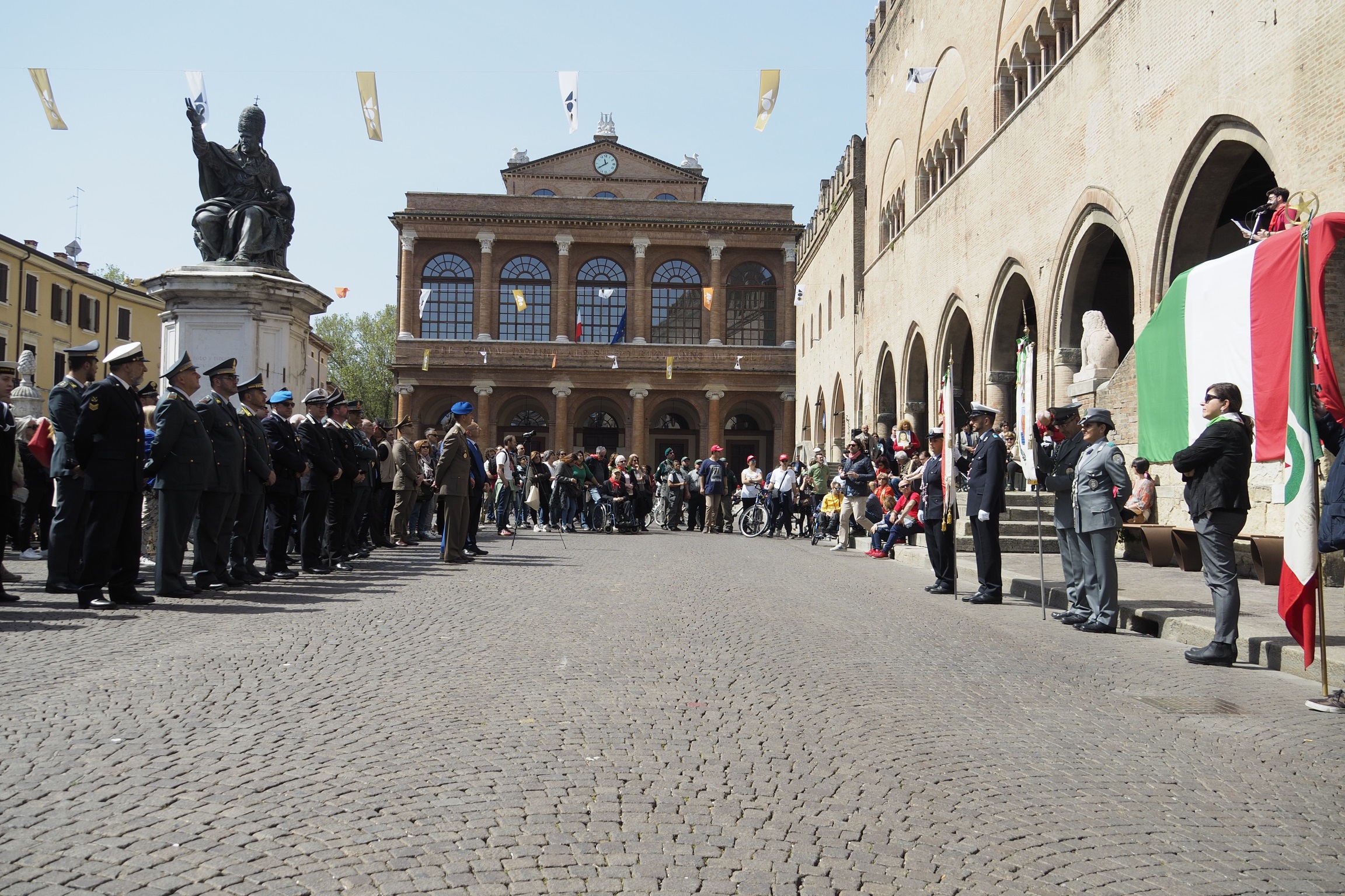 Con il raduno delle autorità, delle Forze Armate, delle delegazioni partigiane, combattentistiche e d’Arma, politiche, sindacali, studentesche e cittadine ha preso avvio questa mattina, in Piazzale Roma nel Parco Cervi, la cerimonia ufficiale per le celebrazioni del 25 Aprile, 74° anniversario della Liberazione d’Italia.
