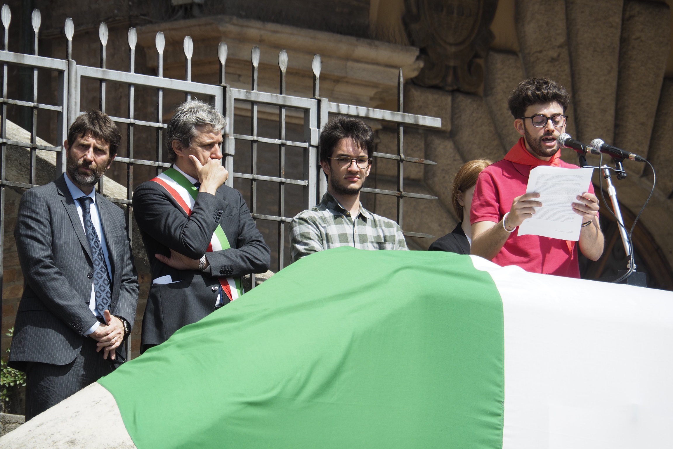 Nel suo intervento il sindaco ha voluto citare i nomi dei partigiani che hanno sacrificato la loro vita per la Liberazione “sono nomi e cognomi che sentiamo anche oggi. Sono i nomi e i cognomi nostri, dei ragazzi che magari scendono in piazza per battersi a difesa dell’ambiente, per l’altruismo di chi vuole lasciare un mondo migliore di quello in cui è nato”.
