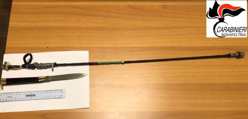 Il coltello di circa 13 cm, la droga ed il frustino bullonato, creato artigianalmente utilizzando l’antenna di un’autovettura a cui sono stati applicati dei bulloni, venivano sequestrati ed il soggetto ristretto in camera di sicurezza in attesa del rito direttissimo, su disposizione del PM di turno.
