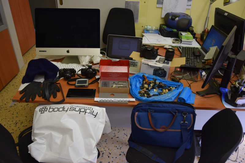 Il fermato, un pregiudicato 41enne di origini napoletane, veniva bloccato in sicurezza e tratto in arresto in flagranza dopo aver accertato il furto ai danni di un negozio di tatuaggi sito nella medesima via al civico 186/A. Ulteriori ricerche permettevano di rintracciare anche l’autovettura regolarmente parcheggiata in una via limitrofa con all’interno ancora custodita tutta la refurtiva trafugata poco prima (fotocamere, tablet, kit per tatuatori, pc e altri oggetti multimediali per un valore complessivo di svariate migliaia di euro).