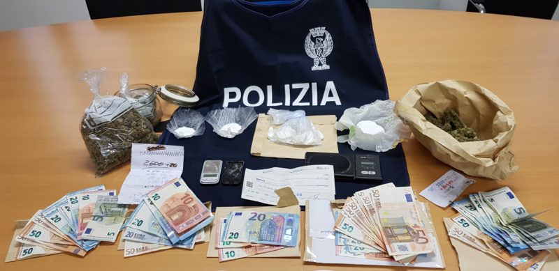 Dopo un servizio di pedinamento gli agenti sono riusciti a risalire all’immobile in uso anche a quell’altro uomo subito sottoposto a perquisizione: gli agenti hanno rinvenuto quasi 200 gr. di marijuana, decine di grammi di hashish, 2 di ecstasy e quasi 70 gr. di cocaina, oltre a varie bustine utili al confezionamento della droga, bilancino di precisione e quasi 1300 euro in denaro in contante