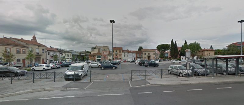 Si tratta ormai di un non-luogo caratterizzato dalla perdita del costruito di un intero isolato (eventi bellici) e delle demolizioni successive, nonché dalla perdita della qualità urbana e dalla disgregazione delle relazioni tra il luogo e le emergenze architettoniche al suo intorno: Anfiteatro Romano, Scuola Media Panzini, Chiesa di Santa Rita, Mercato Coperto, Ex Convento di San Francesco, Tempio Malatestiano.