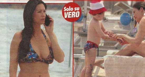Manuela, che ha un fisico tutte curve, è stata fotografata in spiaggia a Rimini, mentre è col figlio Mattia, che ha da poco compiuto 5 anni.