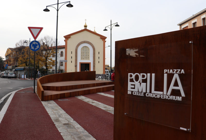 Rifatto anche il sistema di raccolta fognario e l’impianto della pubblica illuminazione utilizzando corpi illuminanti di pregio. Completamente nuove le opere d’arredo con la creazione di aiuole verdi piantumate con tappezzanti e di pannelli esplicativi per valorizzare l’identità del luogo. Utilizzando le economie sono stati poi ricompresi nell’intervento un attraversamento pedonale con semaforo a chiamata, il prolungamento dello spartitraffico fino a oltre via della Piante per impedire le pericolose svolte a sinistra lungo la via Emilia e riassaltato tutto il tratto della via Emilia interessato dai lavori. L’area è stata anche dotata di un nuovo parcheggio di circa 40 posti auto in area contigua così da dar risposta alle esigenze delle attività commerciali e dei residenti.