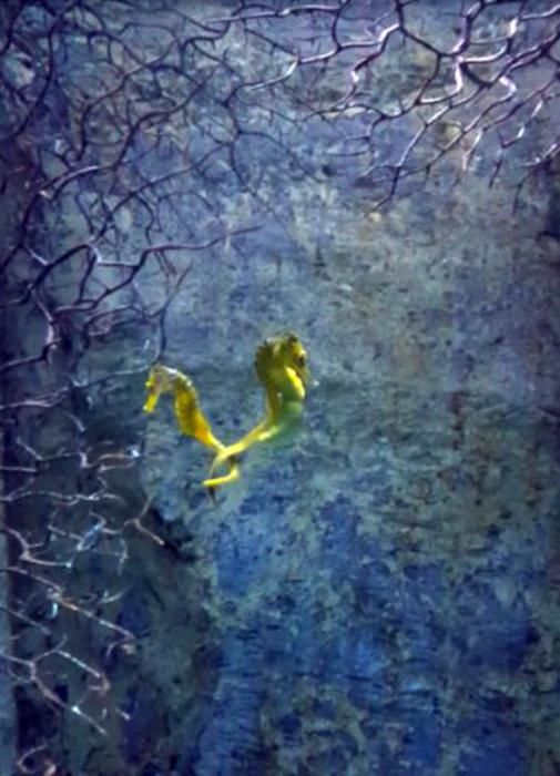 Si tratta dell’Hyppocampus redii, il cavalluccio marino, i cui esemplari maschi “danzano” ogni giorno con la propria compagna, sono monogami e fedeli e partoriscono al posto delle femmine. Nel video si vede uno di questi organismi marini che mette al mondo un migliaio di piccoli mentre la sua coda è ancora intrecciata con quella della femmina che così lo ‘assiste’ nell’evento.