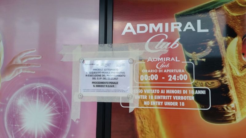 Nel primo pomeriggio di oggi, la Polizia Municipale (Ufficio Edilizia-Ambiente), a seguito di provvedimento emesso dal Gip del Tribunale di Rimini, ha posto sotto sequestro l’immobile “Admiral Club”, locale adibito a sala scommesse, slot machines e videolottery, attivo nell’angolo tra Via Italia e Via Crimea.