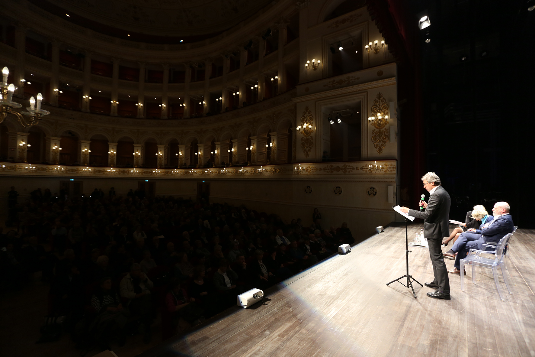 Ora i riminesi che hanno riempito il Teatro Galli, con un affetto che in un baleno ha esaurito tutti i posti disponibili, insieme alle istituzioni si sono stretti alla propria biblioteca in un abbraccio commosso che si è protratto fino a sera, con lezioni magistrali come quella di Luciano Canfora, grande storico e filologo, intervenuto sulla Storia politica delle biblioteche; con Alessandro Bergonzoni e Marino Sinibaldi, colti e raffinati “giocolieri” della parola, che sempre nel pomeriggio gli sono succeduti con una Conversazione dal titolo “Leggi per il silenzio. Il raccoglimento del volume, tra consulto e inconsulto ed infine con Vinicio Capossela, cantore di mondi e ultramondi, di storie epiche, di amori, che in serata al Teatro degli Atti è stato protagonista di un incontro dal titolo Ri-trovatori, uomini e bestie in libri e canzoni.