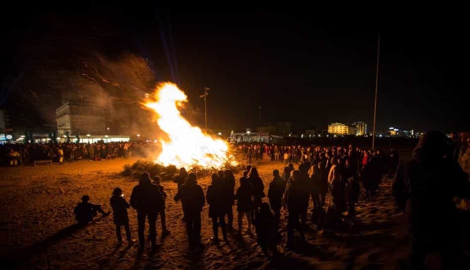Confermato lo spettacolo così come ideato per questa sera, con giochi luminosi e installazioni con la regia di Antonio Rinaldi e le musiche di Giaga. Dalle 20.30 la spiaggia di piazzale Roma comincerà a risplendere di piccole luci in attesa del fuoco, che prenderà vita con un momento magico e suggestivo. Ad accompagnare il rituale di benvenuto alla primavera, dolcezze, ciambella e albana dolce offerti dalla Cooperativa Bagnini di Riccione.