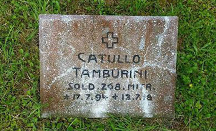 Nato a San Clemente il 18 luglio 1892, in via Cabernarducci 109 A, dall’unione dei coloni Luigi Tamburini (fu Francesco) e Palma Baratti, Getulio Giuseppe Tamburini muore, per malattia (tubercolosi? edema da fame?), il 13 luglio 1918 – 5 giorni prima del suo 26° compleanno – forse rinchiuso in campo di prigionia della Bassa Slesia o di un’altra zona orientale della Germania. Ed è qui che il giovane soldato è inizialmente sepolto: accanto ad altri compagni di trincea vinti dagli stenti e dal freddo.