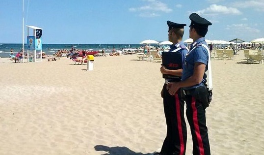 L’uomo, dopo aver rubato un portafogli lasciato sotto un ombrellone da una turista, vistosi scoperto dal titolare dello stabilimento balneare, allo scopo di assicurarsi la fuga, non esitava a colpirlo con calci e pugni.
