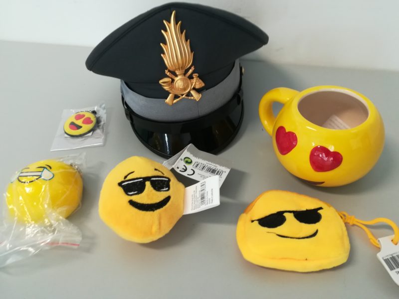 L’attività ha permesso di sottoporre a sequestro circa 5.000 prodotti, per la quasi totalità costituiti da cuscini, tazze, palline di gomma e peluche, calamite, salvadanai e portamonete, raffiguranti le note “faccine”, oltre a circa 200 magliette di celebri club calcistici, riportanti i nomi di noti calciatori più in voga tra gli appassionati. I soggetti segnalati all’Autorità Giudiziaria, in questo caso, sono stati complessivamente quattro, due cinesi, un senegalese ed un italiano residente a Rimini.