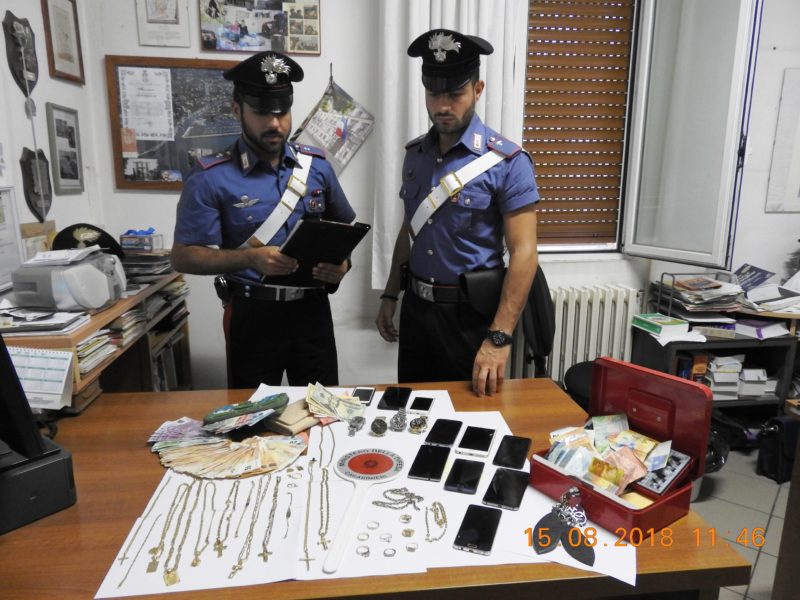 Oltre alla somma contante di circa 9 mila euro, i militari hanno rinvenuto, nei vari locali dell’appartamento, debitamente custodite in delle cassettine metalliche, 4 orologi di pregio, 6 smartphones di ultima generazione, 31 monili in oro ed argento di varia natura, principalmente anelli e catenine, oltre a 5 dollari canadesi e 70 franchi svizzeri. La refurtiva in questione è stata sottoposta a sequestro in attesa di individuare i legittimi proprietari.