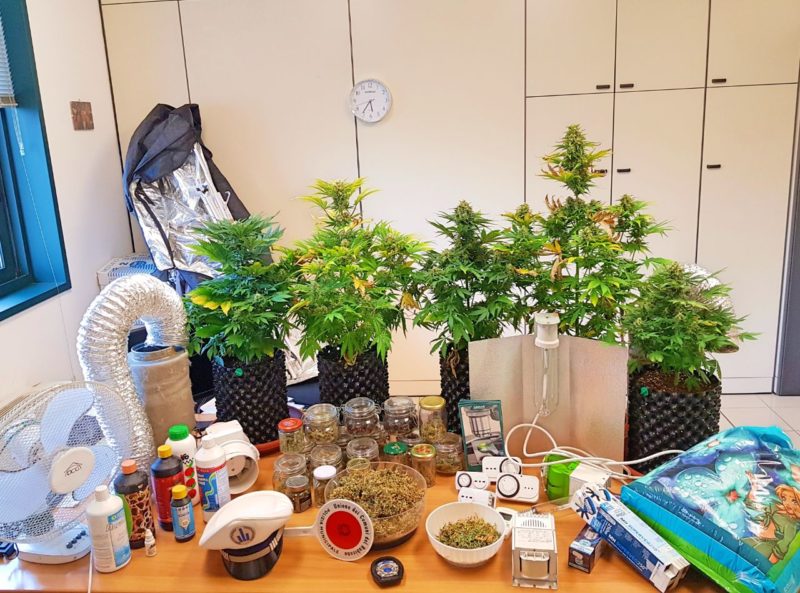 Qui gli agenti scoprivano una piccola coltivazione, con tanto di serra riscaldata sotto la quale stavano maturando 5 piante di cannabis alte 80 cm., e, in un’altra stanza, marijuana di precedenti “raccolti”, essiccata e suddivisa in vari contenitori, per un quantitativo pari a circa mezzo chilogrammo.