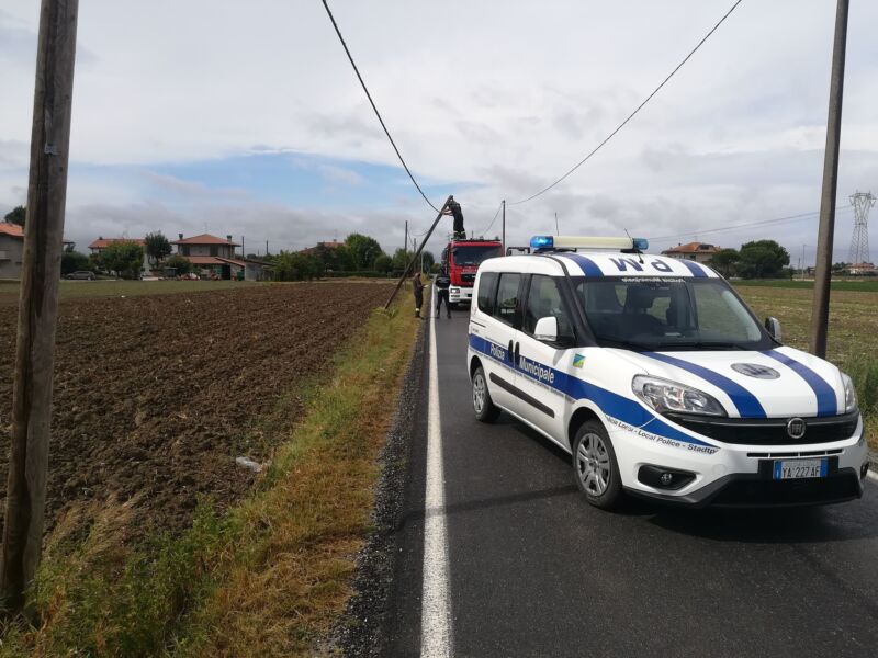 Un palo della Telecom si stacca dalla base e rischia, cadendo, di invadere la strada, ma soprattutto di colpire gli automobilisti che transitano. Interviene la Polizia locale. Il tutto è accaduto poco prima delle 16 di oggi a San Mauro Pascoli, in via Fontanelle. Una chiamata ha avvisato la polizia locale del pericolo; gli agenti, giunti sul posto hanno chiuso al traffico la via e chiamato i vigili del fuoco che sono intervenuti da Cesena. Il palo in questione, si era letteralmente staccato dalla base a causa del forte vento, e, solo il filo, reggeva lo stesso. Il personale del 115 ha ripristinato il tutto e dopo circa mezz’ora la strada è tornata transitabile in sicurezza