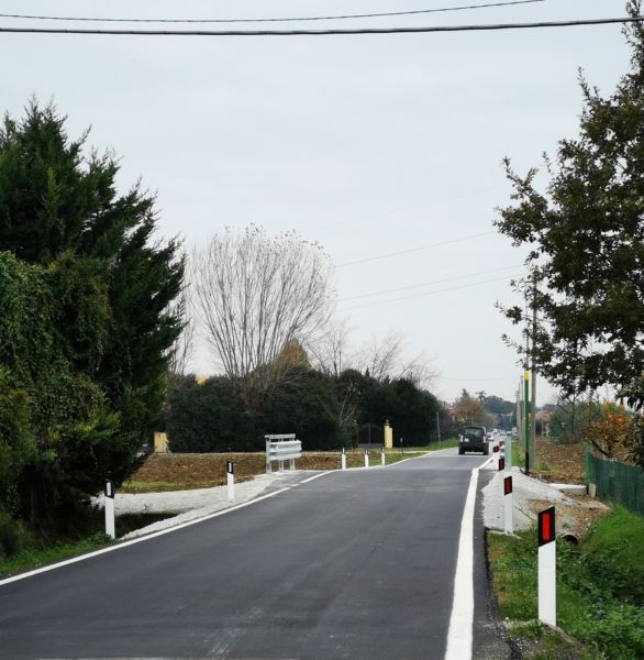 “La sezione è più ampia della precedente – informa il Sindaco Filippo Giovannini – su indicazione del Consorzio di Bonifica della Romagna, perchè il punto rappresentava un’ostruzione idraulica. Per lasciare un franco di sicurezza in caso di piena ed evitare esondazioni di acqua sulla strada, il piano viabile è stato rialzato di circa 30, con raccordo a valle e a monte”.