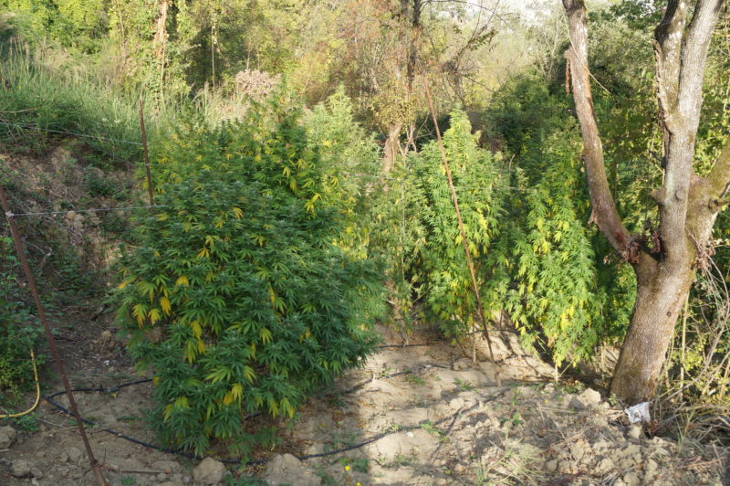 L’esecuzione delle misure cautelari in parola, giungono al termine di un’articolata attività investigativa svolta in maniera congiunta dai suddetti Reparti e coordinata dalla Procura della Repubblica presso il Tribunale di Forlì – Federica Messina. I due sfruttando la fitta vegetazione che caratterizza le colline della Valle del Rubicone specie nel periodo estivo, avevano allestito in località Ginestreto delle vere e proprie piantagioni di marijuana, distanti circa 200 metri l’una dall’altra e fornite di adeguati sistemi di irrigazione e di fertilizzazione, tali da permettere la crescita della pianta, necessaria alla maturazione della sostanza prodotta.