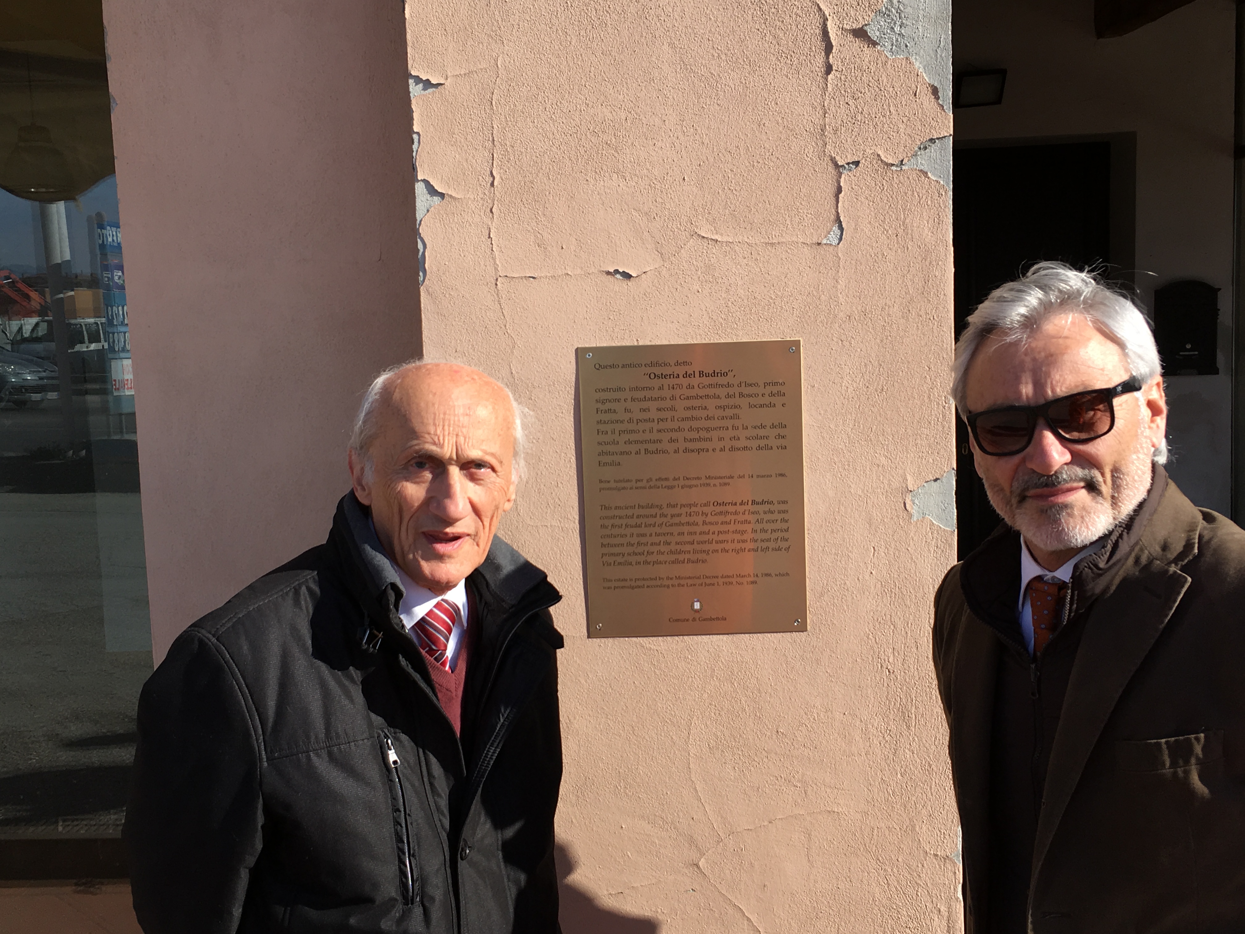 L’Amministrazione comunale, al fine di valorizzare il patrimonio di interesse storico-culturale, ha apposto targhe su alcuni edifici pubblici di Gambettola, come ad esempio il centro culturale Fellini, il teatro comunale, la casa dei nonni di Federico Fellini e l’ex-macello di via Roma. Qualche mese fa, Rinaldo Ugolini si è fatto interprete dell’esigenza di apporre una targa sull’edificio, di proprietà privata, posto sulla via Emilia conosciuto come l’Osteria del Budrio.