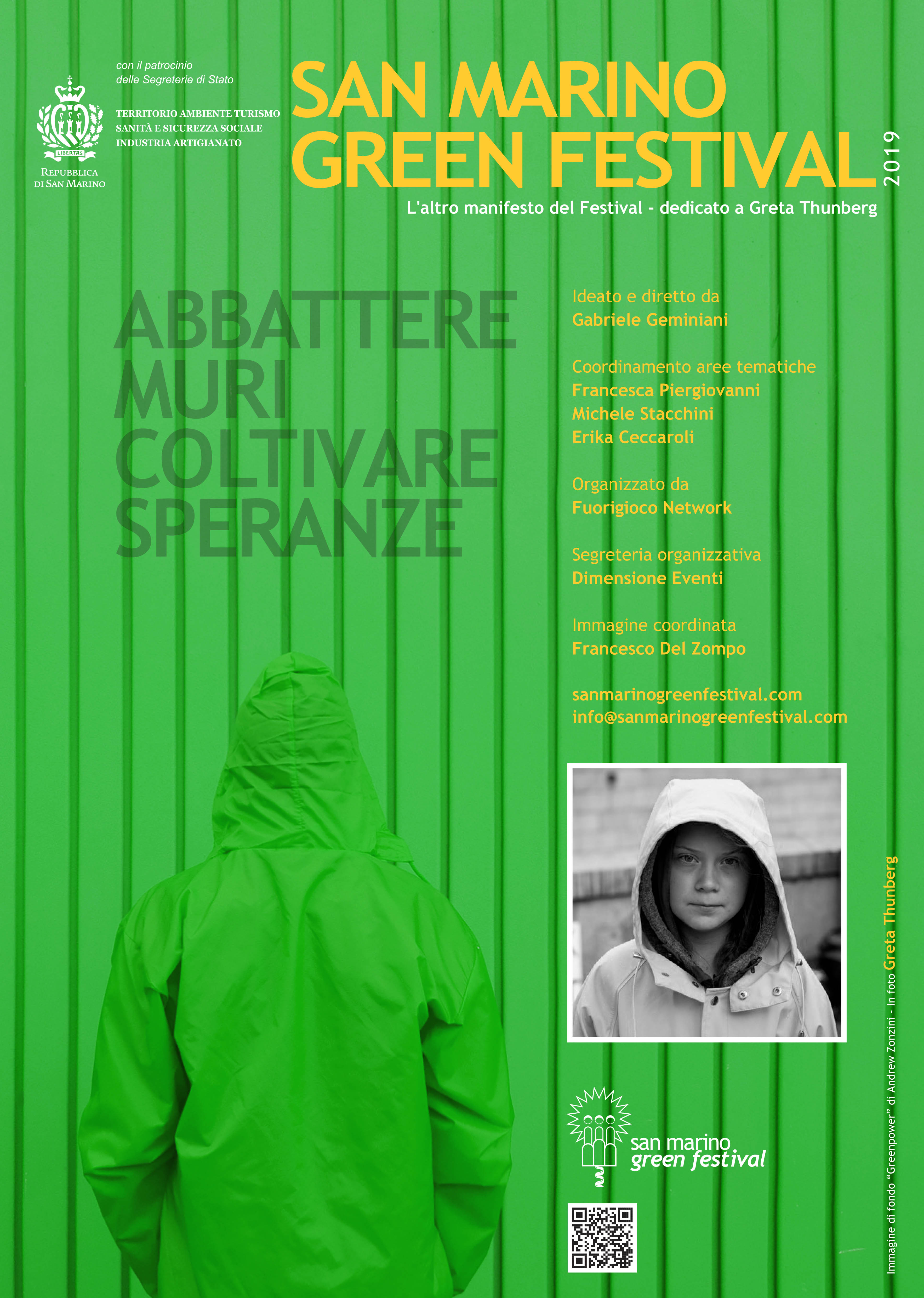 Già a dicembre avevamo deciso di dedicare questa prima edizione del San Marino Green Festival 2019 a Greta Thunberg, la giovanissima ecologista svedese (classe 2003) che il 14 dicembre scorso, in occasione del vertice delle Nazioni Unite sui cambiamenti climatici tenutosi a Katowice in Polonia, ha dichiarato ai leader mondiali riuniti in sala: «Voi parlate soltanto di un’eterna crescita economica verde poiché avete troppa paura di essere impopolari. […] Non siete abbastanza maturi da dire le cose come stanno. […] La biosfera è sacrificata perché alcuni possano vivere in maniera lussuosa. La sofferenza di molte persone paga il lusso di pochi. Se è impossibile trovare soluzioni all’interno di questo sistema, allora dobbiamo cambiare sistema.»