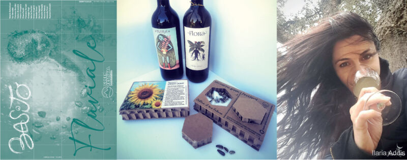 Oltre alla distribuzione di semi, il progetto prevede ogni anno la realizzazione di una etichetta ad opera di artisti dagli stili proteiformi. Per l’edizione 2023 le etichette saranno due e sono state estrapolate da una fanzine dal titolo FLUVIALE che il collettivo di artisti riminesi Basito, ha voluto dedicare al Green Festival. Il vino invece sarà quello di “una piccola produzione solitaria di vini artigianali” come ama definirla la titolare, Ilaria Addis.