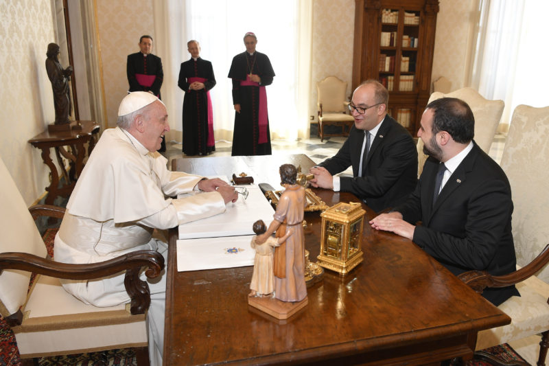 Il colloquio ha inoltre toccato i principali temi comuni. In particolare, i Capi di Stato hanno riferito della più recente visita a Lampedusa e sviluppato con il Pontefice considerazioni e visioni comuni sul tema dei migranti, rappresentando le forme di accoglienza che San Marino sta adottando. Forte apprezzamento ed ampia condivisione sono stati espressi dal Santo Padre su questo tema, che ha esortato a “mantenere alta l’attenzione verso gli ultimi e i più deboli” e “a continuare nel solco di questa tradizione, che fa onore alla Repubblica e ai suoi Cittadini”.
