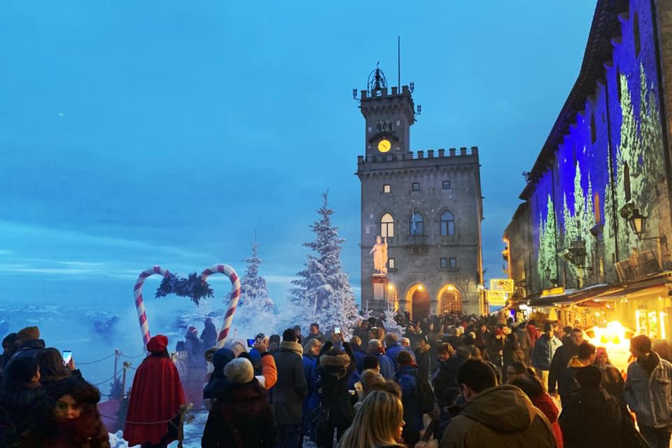 Accolto dalla Banda Militare di San Marino con le note di una classica melodia natalizia, Osvaldo si è inoltrato nei mercatini tra banchi di artigianato e prodotti gastronomici.