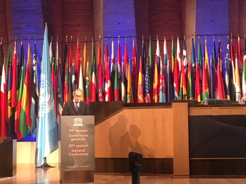 E’ in corso, a Parigi, la 39° Conferenza Generale dell’UNESCO, che a cadenza biennale riunisce i 195 Paesi membri dell’Organizzazione. San Marino, che fa parte dell’UNESCO dal 1974 e che nel 2008 è stata inserita nella lista del Patrimonio Mondiale dell’Umanità, partecipa ai lavori con una propria delegazione guidata dal Segretario di Stato agli Affari Esteri, che nella mattinata è intervenuto in plenaria al dibattito di politica generale.