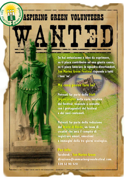 Il San Marino Green Festival ricerca volontari da inserire nel proprio staff per far fronte alle necessità organizzative dell’evento.