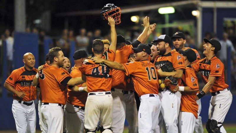Arriviamo all’ottava ripresa dove gli uomini di Ceccaroli trovano il punto decisivo, Noguera tocca un singolo sul primo lancio del rilievo Rietel, poi sulla rimbalzante di Garbella arriva in seconda. Sale in pedana il manager orange Urbanus che decide di inserire Ploeger. Il neo entrato elimina Romero in diamante, ma con Noguera sul sacchetto di terza commetterà il balk (chiamato dall’arbitro di prima base Jankovic) che spingerà a punto il corridore riminese (1-3). Al cambio di campo Duran incassa la valida di Z. Croes. A questo punto sale in pedana il manager Ceccaroli che toglie il suo partente inserendo il mancino Hernandez che verrà sanzionato con un balk (corridore in seconda), ma lascierà al piatto Urbanus. Altro cambio in pedana entra l’olandese Kelly. L’ex Neptunus Rotterdam piazza due importanti k su Berkenbosch e L. Croes. Arriviamo nel finale di gara. Sempre Kelly sulla collinetta per i Pirati. Il battitore designato Daal realizza un solo homer al centro che permette ai suoi di arrivare a meno uno (2-3), ma Kelly dopo la volata di Gerard, completa la salvezza mettendo a segno due strike-out su Clarijs e Draijer V. Rimini vince 3-2 e si qualifica alla semifinale da primi del Girone A (Rouen al secondo posto) dopo una partita giocata con la concentrazione e la determinazione giusta vista la qualità degli avversari che hanno schierato la leggenda Cordemans (102 lanci) come starter.