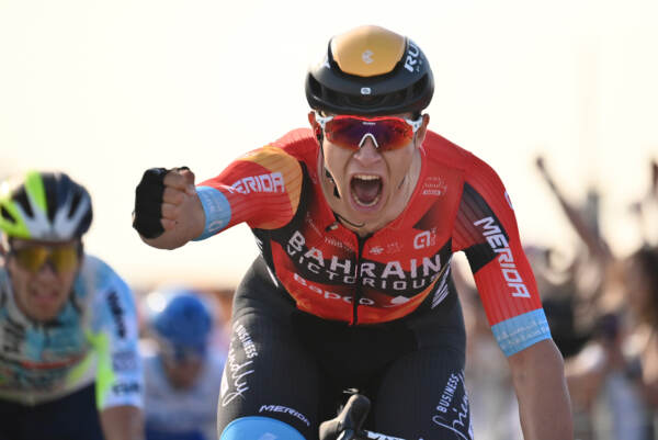 May 07, 2023 Teramo, Italy - Sport - Cycling - Giro d’Italia 2023 - 106th Edition - Stage 2- Teramo - San Salvo In the pic: MILAN Jonathan (ITA) BAHRAIN VICTORIOUS, the winner of second stage