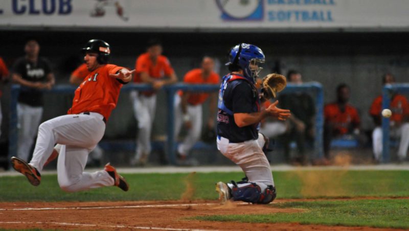 Due riprese più avanti le mazze romagnole piazzano l’allungo decisivo sul rilievo Cherubini. Dopo l’out di Romero, Angulo tocca un singolo, mentre N. Garbella si guadagna una base ball. Il prima base dei Pirati Ustariz realizza un gran doppio al centro da due punti che svuota le basi (1-8). Al cambio di campo un altro fuoricampo questa volta dell’ex MLB Colabello confeziona la seconda segnatura della T&A sempre sullo starter Bassani (2-8). Al quinto inning prima su Cherubini poi sul neo entrato Perez i Pirati producono l’ennesimo big inning da 5 punti che di fatto affossa gli avversari (2-13). Non sazi della scorpacciata di valide, il lineup neroarancio nel corso della settima ripresa di gioco trova altri 3 punti sul giovane Coveri grazie a tre valide e un colpito (2-16).