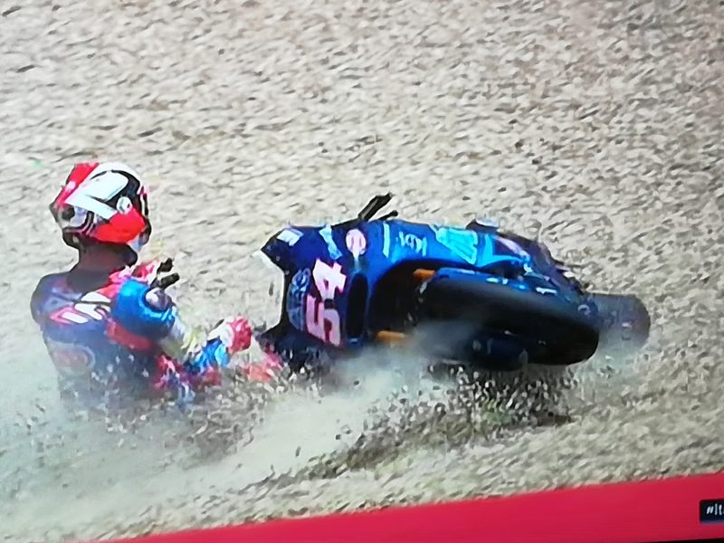 La moto 2 non regala le stesse soddisfazioni ai nostri, purtroppo Mattia Pasini, mentre era quinto, va ancora a terra e deve un’ennesima volta fermarsi durante la gara, stessa cosa per Romano Fenati.