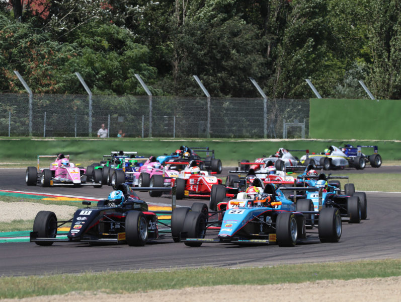 Prova di forza di Leonardo Lorandi nell’Italian F.4. Scattato con decisione al via dalla terza casella, si è messo subito in scia a Federico Malvestiti, autore della pole. Lo ha studiato per qualche giro poi nella quarta tornata ha piazzato l’attacco decisivo. Un paio di passaggi per mettere uno spazio sufficiente ad impedire attacchi ed è volato verso una meritata vittoria. Secondo posto dunque Malvestiti mentre c’è stata grande battaglia per l’ultimo gradino del podio. L’entrata della Safety Car ha dato una mano a Giorgio Carrara, in difficoltà contro gli attacchi di Enzo Fittipaldi. Alla ripresa, nei pochi giri rimasti, la difesa è stata più agevole, regalandogli un prezioso terzo posto.