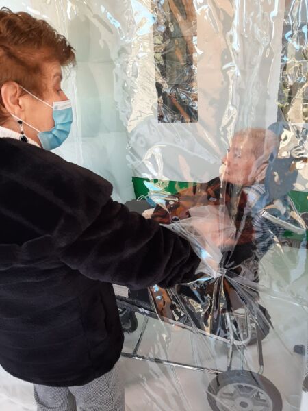 San Mauro Pascoli (FC). E’ stata inaugurata oggi, lunedì 08 febbraio, la stanza degli abbracci presso la Domus Pascoli, un luogo sicuro dove gli ospiti delle Casa Residenza Anziani possono incontrare e abbracciare i familiari, che da tempo non possono entrare nella struttura a causa delle restrizioni prese in questi mesi di pandemia. Presenti al taglio del nastro Paolo Dall’Acqua della Cooperativa L’Aquilone, promotrice dell’iniziativa, il Sindaco del Comune di San Mauro Pascoli Luciana Garbuglia e Massimo Pesaresi di Tecnocasa – filiale di San Mauro Pascoli, che hanno contribuito finanziando l’iniziativa.