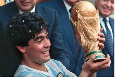 Il mondo del calcio perde il suo dio, il più grande talento ad averlo mai giocato. Il pibe de oro ha appena 15 anni quando esordisce nel mondo professionistico con la maglia dell’Argentinos Juniors e nel giro di pochi mesi la sua carriera decolla: lascia la povertà di Villa Fiorito, il barrio di Buenos Aires dove è nato e diventa un idolo del calcio e una icona di riscatto per il suo popolo. Vestirà le maglie di Boca Juniors, Barcellona, Napoli, Siviglia e Newell’s Old Boys, oltre quella della Nazionale Argentina.